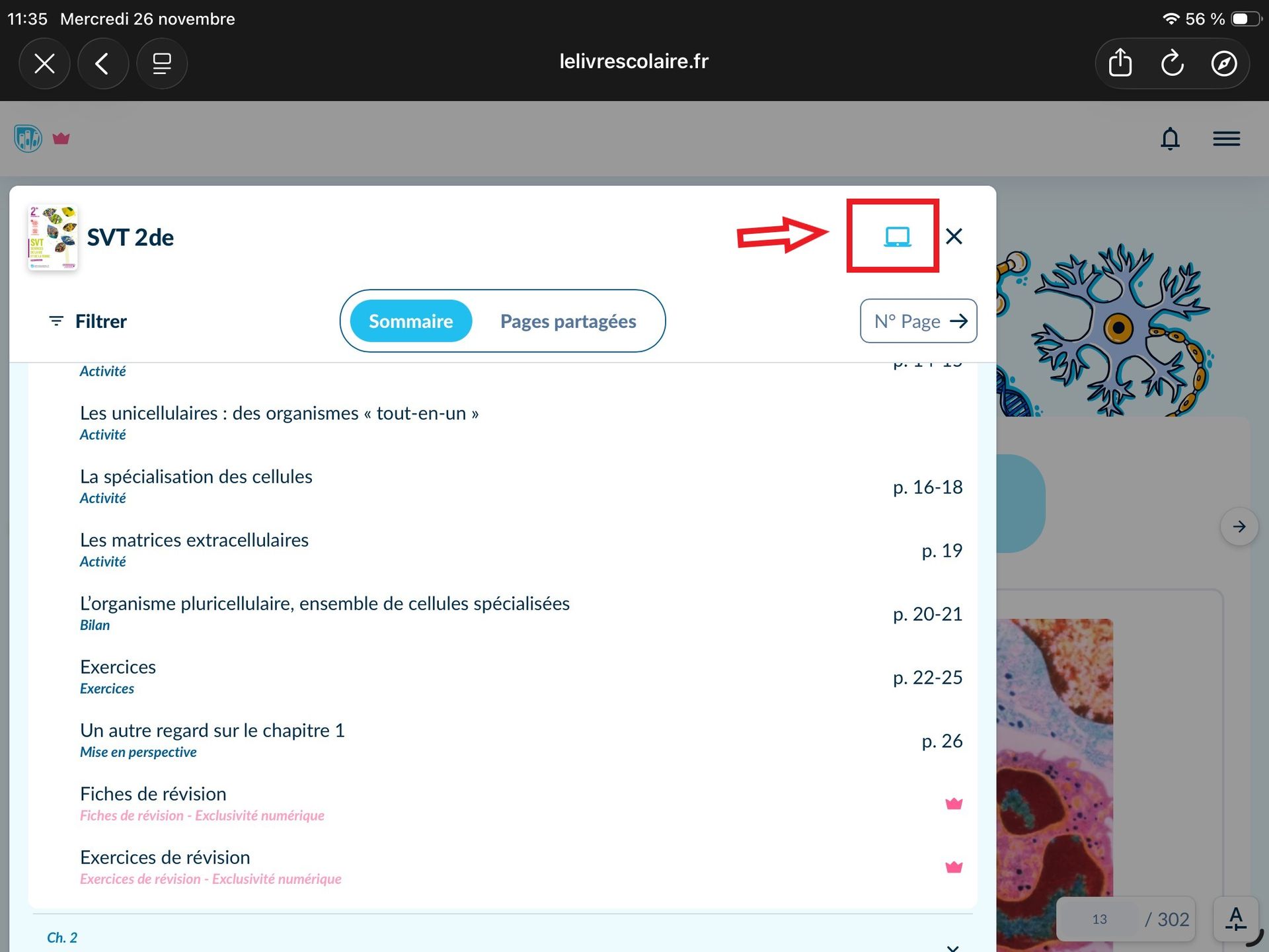 Une fois le manuel affiché sur l'application en ligne de l'éditeur cliqué sur n'importe quel chapitre de ce dernier.